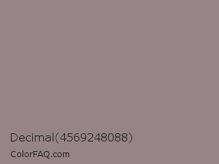 Decimal 4569248088 Color is a normal red color and the nearest color is Venus #928590. Hex code #978486 and RGB value is rgb(151,132,134). In RGB color space, this color is composed of 59% red, 52% green, 53% blue, In CMYK color space, this color is composed of 0% cyan, 13% magenta, 11% yellow , 41% black , In HSL color space, this color has a hue angle of 354° , 8% saturation and 55% lightness.