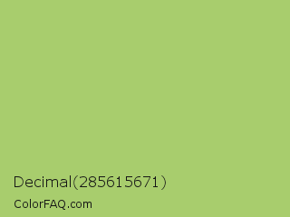 Decimal 285615671 Color is a light green color and the nearest color is Wild Willow #b9c46a. Hex code #a8cd6d and RGB value is rgb(168,205,109). In RGB color space, this color is composed of 66% red, 80% green, 43% blue, In CMYK color space, this color is composed of 18% cyan, 0% magenta, 47% yellow , 20% black , In HSL color space, this color has a hue angle of 83° , 49% saturation and 62% lightness.