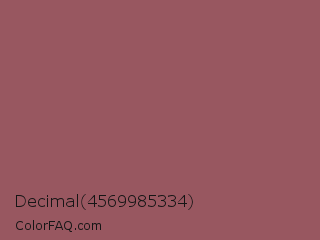 Decimal 4569985334 Color is a normal red color and the nearest color is Au Chico #97605d. Hex code #985760 and RGB value is rgb(152,87,96). In RGB color space, this color is composed of 60% red, 34% green, 38% blue, In CMYK color space, this color is composed of 0% cyan, 43% magenta, 37% yellow , 40% black , In HSL color space, this color has a hue angle of 352° , 27% saturation and 47% lightness.