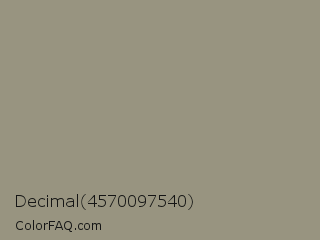 Decimal 4570097540 Color is a normal yellow color and the nearest color is Gurkha #9a9577. Hex code #989480 and RGB value is rgb(152,148,128). In RGB color space, this color is composed of 60% red, 58% green, 50% blue, In CMYK color space, this color is composed of 0% cyan, 3% magenta, 16% yellow , 40% black , In HSL color space, this color has a hue angle of 50° , 10% saturation and 55% lightness.