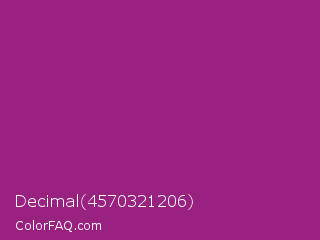 Decimal 4570321206 Color is a normal magenta color and the nearest color is Amaranth Deep Purple #9f2b68. Hex code #992280 and RGB value is rgb(153,34,128). In RGB color space, this color is composed of 60% red, 13% green, 50% blue, In CMYK color space, this color is composed of 0% cyan, 78% magenta, 16% yellow , 40% black , In HSL color space, this color has a hue angle of 313° , 64% saturation and 37% lightness.