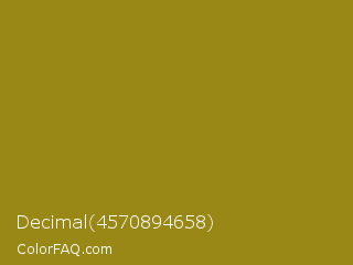 Decimal 4570894658 Color is a normal yellow color and the nearest color is Hacienda #98811b. Hex code #998816 and RGB value is rgb(153,136,22). In RGB color space, this color is composed of 60% red, 53% green, 9% blue, In CMYK color space, this color is composed of 0% cyan, 11% magenta, 86% yellow , 40% black , In HSL color space, this color has a hue angle of 52° , 75% saturation and 34% lightness.