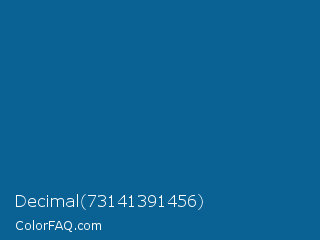 Decimal 73141391456 Color is a normal blue color and the nearest color is Bahama Blue #026395. Hex code #096194 and RGB value is rgb(9,97,148). In RGB color space, this color is composed of 4% red, 38% green, 58% blue, In CMYK color space, this color is composed of 94% cyan, 34% magenta, 0% yellow , 42% black , In HSL color space, this color has a hue angle of 202° , 89% saturation and 31% lightness.