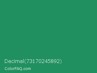 Decimal 73170245892 Color is a normal green color and the nearest color is Eucalyptus #278a5b. Hex code #219060 and RGB value is rgb(33,144,96). In RGB color space, this color is composed of 13% red, 56% green, 38% blue, In CMYK color space, this color is composed of 77% cyan, 0% magenta, 33% yellow , 44% black , In HSL color space, this color has a hue angle of 154° , 63% saturation and 35% lightness.