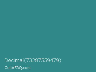 Decimal 73287559479 Color is a normal cyan color and the nearest color is Lochinvar #2c8c84. Hex code #308889 and RGB value is rgb(48,136,137). In RGB color space, this color is composed of 19% red, 53% green, 54% blue, In CMYK color space, this color is composed of 65% cyan, 1% magenta, 0% yellow , 46% black , In HSL color space, this color has a hue angle of 181° , 48% saturation and 36% lightness.