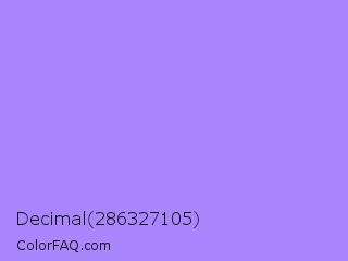 Decimal 286327105 Color is a light indigo color and the nearest color is Dull Lavender #a899e6. Hex code #a986fd and RGB value is rgb(169,134,253). In RGB color space, this color is composed of 66% red, 53% green, 99% blue, In CMYK color space, this color is composed of 33% cyan, 47% magenta, 0% yellow , 1% black , In HSL color space, this color has a hue angle of 258° , 97% saturation and 76% lightness.