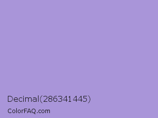 Decimal 286341445 Color is a light indigo color and the nearest color is Light Pastel Purple #b19cd9. Hex code #a995d9 and RGB value is rgb(169,149,217). In RGB color space, this color is composed of 66% red, 58% green, 85% blue, In CMYK color space, this color is composed of 22% cyan, 31% magenta, 0% yellow , 15% black , In HSL color space, this color has a hue angle of 258° , 47% saturation and 72% lightness.
