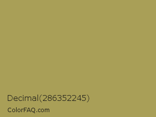 Decimal 286352245 Color is a normal yellow color and the nearest color is Husk #b7a458. Hex code #a99f57 and RGB value is rgb(169,159,87). In RGB color space, this color is composed of 66% red, 62% green, 34% blue, In CMYK color space, this color is composed of 0% cyan, 6% magenta, 49% yellow , 34% black , In HSL color space, this color has a hue angle of 53° , 32% saturation and 50% lightness.