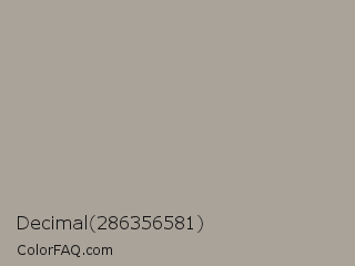 Decimal 286356581 Color is a light orange color and the nearest color is Dawn #a6a29a. Hex code #a9a399 and RGB value is rgb(169,163,153). In RGB color space, this color is composed of 66% red, 64% green, 60% blue, In CMYK color space, this color is composed of 0% cyan, 4% magenta, 9% yellow , 34% black , In HSL color space, this color has a hue angle of 38° , 9% saturation and 63% lightness.