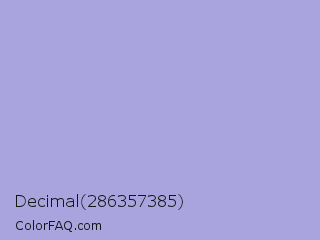 Decimal 286357385 Color is a light indigo color and the nearest color is Cold Purple #aba0d9. Hex code #a9a4dd and RGB value is rgb(169,164,221). In RGB color space, this color is composed of 66% red, 64% green, 87% blue, In CMYK color space, this color is composed of 24% cyan, 26% magenta, 0% yellow , 13% black , In HSL color space, this color has a hue angle of 245° , 46% saturation and 75% lightness.
