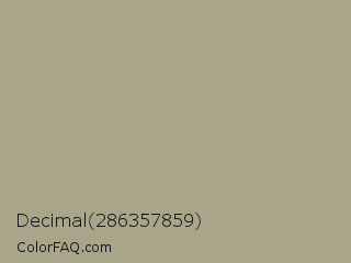 Decimal 286357859 Color is a normal yellow color and the nearest color is Tallow #a8a589. Hex code #a9a58b and RGB value is rgb(169,165,139). In RGB color space, this color is composed of 66% red, 65% green, 55% blue, In CMYK color space, this color is composed of 0% cyan, 2% magenta, 18% yellow , 34% black , In HSL color space, this color has a hue angle of 52° , 15% saturation and 60% lightness.