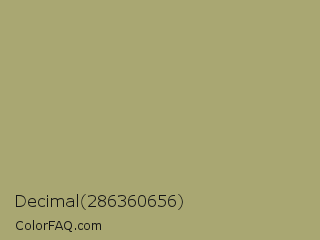 Decimal 286360656 Color is a normal yellow color and the nearest color is Green Smoke #a4af6e. Hex code #a9a772 and RGB value is rgb(169,167,114). In RGB color space, this color is composed of 66% red, 65% green, 45% blue, In CMYK color space, this color is composed of 0% cyan, 1% magenta, 33% yellow , 34% black , In HSL color space, this color has a hue angle of 58° , 24% saturation and 55% lightness.