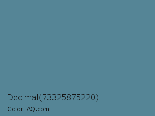 Decimal 73325875220 Color is a normal blue color and the nearest color is Smalt Blue #51808f. Hex code #558596 and RGB value is rgb(85,133,150). In RGB color space, this color is composed of 33% red, 52% green, 59% blue, In CMYK color space, this color is composed of 43% cyan, 11% magenta, 0% yellow , 41% black , In HSL color space, this color has a hue angle of 196° , 28% saturation and 46% lightness.