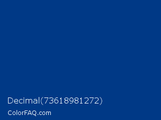 Decimal 73618981272 Color is a dark blue color and the nearest color is Air Force Blue USAF #00308f. Hex code #003986 and RGB value is rgb(0,57,134). In RGB color space, this color is composed of 0% red, 22% green, 53% blue, In CMYK color space, this color is composed of 100% cyan, 57% magenta, 0% yellow , 47% black , In HSL color space, this color has a hue angle of 214° , 100% saturation and 26% lightness.