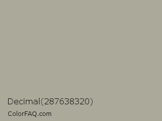 Decimal 287638320 Color is a light yellow color and the nearest color is Bud #a8ae9c. Hex code #abaa9a and RGB value is rgb(171,170,154). In RGB color space, this color is composed of 67% red, 67% green, 60% blue, In CMYK color space, this color is composed of 0% cyan, 1% magenta, 10% yellow , 33% black , In HSL color space, this color has a hue angle of 56° , 9% saturation and 64% lightness.