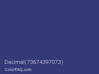 Decimal 73674397073 Color is a normal blue color and the nearest color is Astronaut #283a77. Hex code #353977 and RGB value is rgb(53,57,119). In RGB color space, this color is composed of 21% red, 22% green, 47% blue, In CMYK color space, this color is composed of 55% cyan, 52% magenta, 0% yellow , 53% black , In HSL color space, this color has a hue angle of 236° , 38% saturation and 34% lightness.