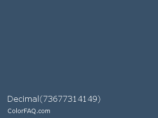 Decimal 73677314149 Color is a normal blue color and the nearest color is Fiord #405169. Hex code #395169 and RGB value is rgb(57,81,105). In RGB color space, this color is composed of 22% red, 32% green, 41% blue, In CMYK color space, this color is composed of 46% cyan, 23% magenta, 0% yellow , 59% black , In HSL color space, this color has a hue angle of 210° , 30% saturation and 32% lightness.