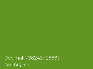Decimal 73824372888 Color is a normal green color and the nearest color is Olive Drab #6b8e23. Hex code #619622 and RGB value is rgb(97,150,34). In RGB color space, this color is composed of 38% red, 59% green, 13% blue, In CMYK color space, this color is composed of 35% cyan, 0% magenta, 77% yellow , 41% black , In HSL color space, this color has a hue angle of 87° , 63% saturation and 36% lightness.