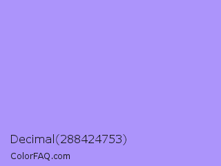 Decimal 288424753 Color is a light indigo color and the nearest color is Dull Lavender #a899e6. Hex code #ac94fb and RGB value is rgb(172,148,251). In RGB color space, this color is composed of 67% red, 58% green, 98% blue, In CMYK color space, this color is composed of 31% cyan, 41% magenta, 0% yellow , 2% black , In HSL color space, this color has a hue angle of 254° , 93% saturation and 78% lightness.