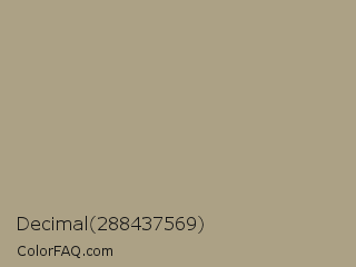 Decimal 288437569 Color is a normal orange color and the nearest color is Hillary #aca586. Hex code #aca185 and RGB value is rgb(172,161,133). In RGB color space, this color is composed of 67% red, 63% green, 52% blue, In CMYK color space, this color is composed of 0% cyan, 6% magenta, 23% yellow , 33% black , In HSL color space, this color has a hue angle of 43° , 19% saturation and 60% lightness.