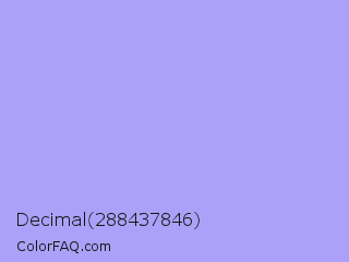 Decimal 288437846 Color is a light indigo color and the nearest color is Biloba Flower #b2a1ea. Hex code #aca1f8 and RGB value is rgb(172,161,248). In RGB color space, this color is composed of 67% red, 63% green, 97% blue, In CMYK color space, this color is composed of 31% cyan, 35% magenta, 0% yellow , 3% black , In HSL color space, this color has a hue angle of 248° , 86% saturation and 80% lightness.