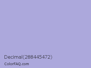 Decimal 288445472 Color is a light indigo color and the nearest color is Cold Purple #aba0d9. Hex code #aca8dc and RGB value is rgb(172,168,220). In RGB color space, this color is composed of 67% red, 66% green, 86% blue, In CMYK color space, this color is composed of 22% cyan, 24% magenta, 0% yellow , 14% black , In HSL color space, this color has a hue angle of 245° , 43% saturation and 76% lightness.