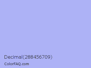 Decimal 288456709 Color is a very light blue color and the nearest color is Perano #a9bef2. Hex code #acb2f5 and RGB value is rgb(172,178,245). In RGB color space, this color is composed of 67% red, 70% green, 96% blue, In CMYK color space, this color is composed of 30% cyan, 27% magenta, 0% yellow , 4% black , In HSL color space, this color has a hue angle of 235° , 78% saturation and 82% lightness.