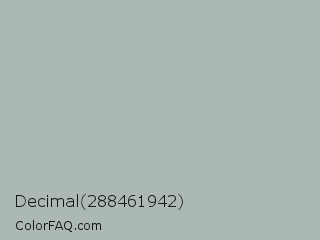 Decimal 288461942 Color is a light green color and the nearest color is Ash Gray #b2beb5. Hex code #acb8b4 and RGB value is rgb(172,184,180). In RGB color space, this color is composed of 67% red, 72% green, 71% blue, In CMYK color space, this color is composed of 7% cyan, 0% magenta, 2% yellow , 28% black , In HSL color space, this color has a hue angle of 160° , 8% saturation and 70% lightness.