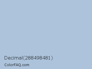 Decimal 288498481 Color is a light blue color and the nearest color is Light Steel Blue #b0c4de. Hex code #acc3db and RGB value is rgb(172,195,219). In RGB color space, this color is composed of 67% red, 76% green, 86% blue, In CMYK color space, this color is composed of 21% cyan, 11% magenta, 0% yellow , 14% black , In HSL color space, this color has a hue angle of 211° , 39% saturation and 77% lightness.