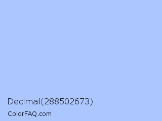 Decimal 288502673 Color is a very light blue color and the nearest color is Perano #a9bef2. Hex code #acc7ff and RGB value is rgb(172,199,255). In RGB color space, this color is composed of 67% red, 78% green, 100% blue, In CMYK color space, this color is composed of 33% cyan, 22% magenta, 0% yellow , 0% black , In HSL color space, this color has a hue angle of 220° , 100% saturation and 84% lightness.