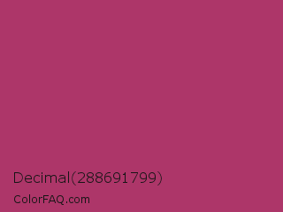 Decimal 288691799 Color is a normal rose color and the nearest color is Royal Heath #ab3472. Hex code #ad3669 and RGB value is rgb(173,54,105). In RGB color space, this color is composed of 68% red, 21% green, 41% blue, In CMYK color space, this color is composed of 0% cyan, 69% magenta, 39% yellow , 32% black , In HSL color space, this color has a hue angle of 334° , 52% saturation and 45% lightness.