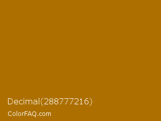 Decimal 288777216 Color is a normal orange color and the nearest color is Ginger #b06500. Hex code #ad7000 and RGB value is rgb(173,112,0). In RGB color space, this color is composed of 68% red, 44% green, 0% blue, In CMYK color space, this color is composed of 0% cyan, 35% magenta, 100% yellow , 32% black , In HSL color space, this color has a hue angle of 39° , 100% saturation and 34% lightness.