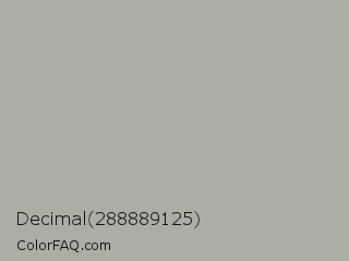 Decimal 288889125 Color is a light yellow color and the nearest color is Dark Medium Gray #a9a9a9. Hex code #adaca5 and RGB value is rgb(173,172,165). In RGB color space, this color is composed of 68% red, 67% green, 65% blue, In CMYK color space, this color is composed of 0% cyan, 1% magenta, 5% yellow , 32% black , In HSL color space, this color has a hue angle of 53° , 5% saturation and 66% lightness.