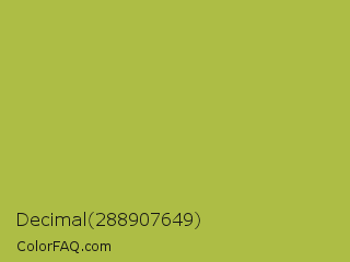 Decimal 288907649 Color is a normal yellow color and the nearest color is Android Green #a4c639. Hex code #adbd45 and RGB value is rgb(173,189,69). In RGB color space, this color is composed of 68% red, 74% green, 27% blue, In CMYK color space, this color is composed of 8% cyan, 0% magenta, 63% yellow , 26% black , In HSL color space, this color has a hue angle of 68° , 48% saturation and 51% lightness.