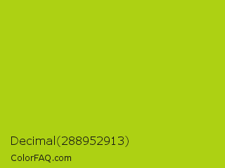 Decimal 288952913 Color is a normal lime color and the nearest color is Bahia #a5cb0c. Hex code #add113 and RGB value is rgb(173,209,19). In RGB color space, this color is composed of 68% red, 82% green, 7% blue, In CMYK color space, this color is composed of 17% cyan, 0% magenta, 91% yellow , 18% black , In HSL color space, this color has a hue angle of 71° , 83% saturation and 45% lightness.