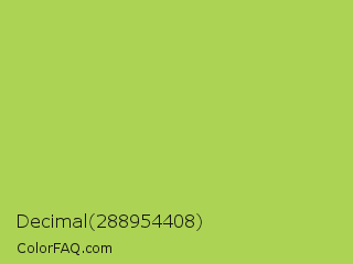 Decimal 288954408 Color is a normal lime color and the nearest color is Conifer #acdd4d. Hex code #add354 and RGB value is rgb(173,211,84). In RGB color space, this color is composed of 68% red, 83% green, 33% blue, In CMYK color space, this color is composed of 18% cyan, 0% magenta, 60% yellow , 17% black , In HSL color space, this color has a hue angle of 78° , 59% saturation and 58% lightness.