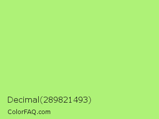 Decimal 289821493 Color is a light green color and the nearest color is Sulu #c1f07c. Hex code #aef277 and RGB value is rgb(174,242,119). In RGB color space, this color is composed of 68% red, 95% green, 47% blue, In CMYK color space, this color is composed of 28% cyan, 0% magenta, 51% yellow , 5% black , In HSL color space, this color has a hue angle of 93° , 83% saturation and 71% lightness.