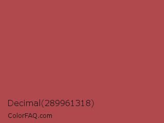Decimal 289961318 Color is a normal red color and the nearest color is English Red #ab4b52. Hex code #af494e and RGB value is rgb(175,73,78). In RGB color space, this color is composed of 69% red, 29% green, 31% blue, In CMYK color space, this color is composed of 0% cyan, 58% magenta, 55% yellow , 31% black , In HSL color space, this color has a hue angle of 357° , 41% saturation and 49% lightness.