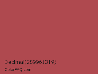 Decimal 289961319 Color is a normal red color and the nearest color is English Red #ab4b52. Hex code #af494f and RGB value is rgb(175,73,79). In RGB color space, this color is composed of 69% red, 29% green, 31% blue, In CMYK color space, this color is composed of 0% cyan, 58% magenta, 55% yellow , 31% black , In HSL color space, this color has a hue angle of 356° , 41% saturation and 49% lightness.