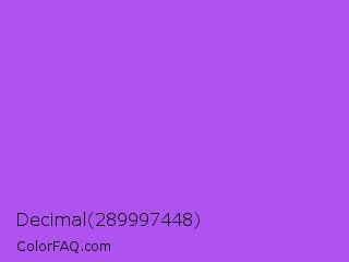 Decimal 289997448 Color is a light purple color and the nearest color is Navy Purple #9457eb. Hex code #af53f0 and RGB value is rgb(175,83,240). In RGB color space, this color is composed of 69% red, 33% green, 94% blue, In CMYK color space, this color is composed of 27% cyan, 65% magenta, 0% yellow , 6% black , In HSL color space, this color has a hue angle of 275° , 84% saturation and 63% lightness.
