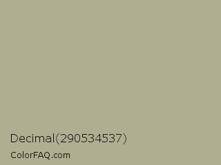 Decimal 290534537 Color is a light yellow color and the nearest color is Taupe Gray #b3af95. Hex code #afae91 and RGB value is rgb(175,174,145). In RGB color space, this color is composed of 69% red, 68% green, 57% blue, In CMYK color space, this color is composed of 0% cyan, 1% magenta, 17% yellow , 31% black , In HSL color space, this color has a hue angle of 58° , 16% saturation and 63% lightness.