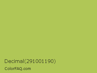 Decimal 291001190 Color is a normal lime color and the nearest color is Celery #b8c25d. Hex code #b0c756 and RGB value is rgb(176,199,86). In RGB color space, this color is composed of 69% red, 78% green, 34% blue, In CMYK color space, this color is composed of 12% cyan, 0% magenta, 57% yellow , 22% black , In HSL color space, this color has a hue angle of 72° , 50% saturation and 56% lightness.