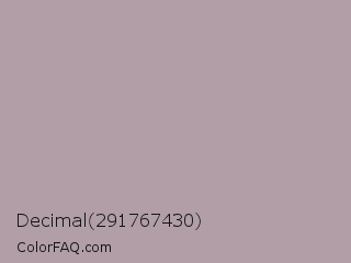 Decimal 291767430 Color is a light rose color and the nearest color is Lilac Luster #ae98aa. Hex code #b19ea6 and RGB value is rgb(177,158,166). In RGB color space, this color is composed of 69% red, 62% green, 65% blue, In CMYK color space, this color is composed of 0% cyan, 11% magenta, 6% yellow , 31% black , In HSL color space, this color has a hue angle of 335° , 11% saturation and 66% lightness.