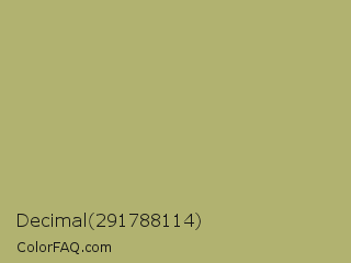 Decimal 291788114 Color is a normal yellow color and the nearest color is Gimblet #b8b56a. Hex code #b1b270 and RGB value is rgb(177,178,112). In RGB color space, this color is composed of 69% red, 70% green, 44% blue, In CMYK color space, this color is composed of 1% cyan, 0% magenta, 37% yellow , 30% black , In HSL color space, this color has a hue angle of 61° , 30% saturation and 57% lightness.