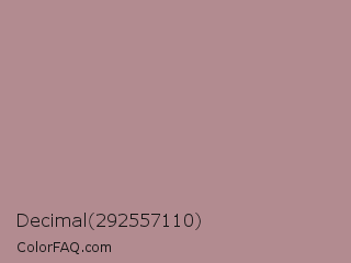 Decimal 292557110 Color is a light red color and the nearest color is English Lavender #b48395. Hex code #b28b90 and RGB value is rgb(178,139,144). In RGB color space, this color is composed of 70% red, 55% green, 56% blue, In CMYK color space, this color is composed of 0% cyan, 22% magenta, 19% yellow , 30% black , In HSL color space, this color has a hue angle of 352° , 20% saturation and 62% lightness.