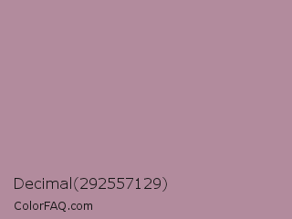 Decimal 292557129 Color is a light rose color and the nearest color is English Lavender #b48395. Hex code #b28b9d and RGB value is rgb(178,139,157). In RGB color space, this color is composed of 70% red, 55% green, 62% blue, In CMYK color space, this color is composed of 0% cyan, 22% magenta, 12% yellow , 30% black , In HSL color space, this color has a hue angle of 332° , 20% saturation and 62% lightness.