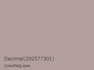 Decimal 292577301 Color is a light red color and the nearest color is Martini #afa09e. Hex code #b29e9f and RGB value is rgb(178,158,159). In RGB color space, this color is composed of 70% red, 62% green, 62% blue, In CMYK color space, this color is composed of 0% cyan, 11% magenta, 11% yellow , 30% black , In HSL color space, this color has a hue angle of 357° , 11% saturation and 66% lightness.