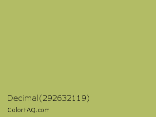 Decimal 292632119 Color is a normal yellow color and the nearest color is Middle Green Yellow #acbf60. Hex code #b2bc65 and RGB value is rgb(178,188,101). In RGB color space, this color is composed of 70% red, 74% green, 40% blue, In CMYK color space, this color is composed of 5% cyan, 0% magenta, 46% yellow , 26% black , In HSL color space, this color has a hue angle of 67° , 39% saturation and 57% lightness.