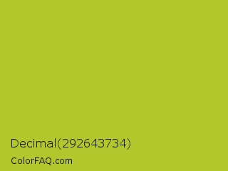 Decimal 292643734 Color is a normal yellow color and the nearest color is Key Lime Pie #bfc921. Hex code #b2c72c and RGB value is rgb(178,199,44). In RGB color space, this color is composed of 70% red, 78% green, 17% blue, In CMYK color space, this color is composed of 11% cyan, 0% magenta, 78% yellow , 22% black , In HSL color space, this color has a hue angle of 68° , 64% saturation and 48% lightness.