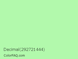 Decimal 292721444 Color is a very light green color and the nearest color is Madang #b7f0be. Hex code #b2f9ac and RGB value is rgb(178,249,172). In RGB color space, this color is composed of 70% red, 98% green, 67% blue, In CMYK color space, this color is composed of 29% cyan, 0% magenta, 31% yellow , 2% black , In HSL color space, this color has a hue angle of 115° , 87% saturation and 83% lightness.